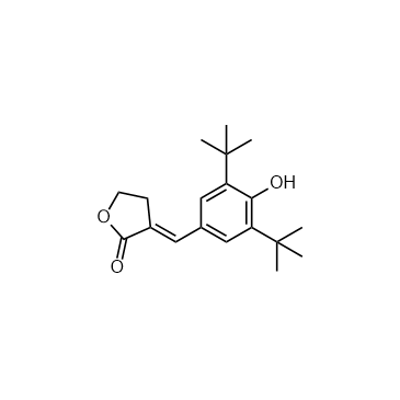 (E)-KME-4 is a potent inhibitor of prostaglandin synthetase (PGS) with an IC50 of 0.28 μM; also inhibits 5-lipoxygenase with an IC50 of 1.05 μM. IC50 & Target:IC50: 0.28 μM (PGS), 1.05 μM (5-lipoxygenase)[1] In Vitro: The synthesized α-benzulidene-γ-butyrolactones are pure isomers (either cis or trans). (E)-KME-4 is the trans isomer. PGS-IN-1 exhibits potent antiinflammatrory and PGS inhibitory activity (IC50=0.28 μM). (E)-KME-4 also shows potent inhibitory activity against 5-lipoxygenase (IC50=1.05 μM)[1].