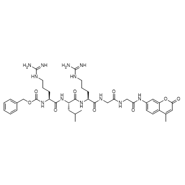 Z-Arg-Leu-Arg-Gly-Gly-AMC is a peptide substrate of SARS-CoV PLpro[1].