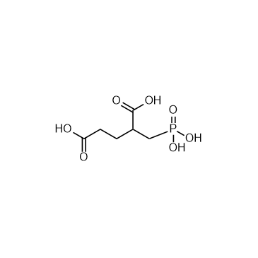 2-PMPA is a potent and selective inhibitor of glutamate carboxypeptidase II (GCPII) with an IC50 of 300 pM. IC50 & Target:IC50: 300 pM (GCPII)[1] In Vitro: 2-PMPA is a potent and selective inhibitor of GCPII, an enzyme which catabolizes the abundant neuropeptide N-acetyl-aspartyl-glutamate (NAAG) to N-acetylaspartate (NAA) and glutamate. 2-PMPA demonstrates robust efficacy in numerous animal models of neurological disease. 2-PMPA is a highly polar compound with multiple negative charges causing significant challenges for analysis in biological matrices[1]. 2-PMPA reduces ketamine-induced decrease of cell viability and increase of LDH levels in the mixed cultures but not in the neuronal cultures[2]. In Vivo: Intraperitoneal administration of 100 mg/kg 2-PMPA results in maximum concentration in plasma of 275 μg/mL at 0.25 h. The half-life, area under the curve, apparent clearance, and volume of distribution are 0.64 h, 210 μg×h/mL, 7.93 mL/min/kg, and 0.44 L/kg, respectively[1]. 2-PMPA at 250 mg/kg, in an anesthetized mouse, after an initial rise, produces a rapid decline and a striking attenuation in BOLD signals in gray matter. The signature of 2-PMPA on brain T2* signals in gray matter at both 167 and 250 mg/kg includes a significant initial rise lasting several minutes[3]. 2-PMPA has neuroprotective activity in an animal model of stroke and anti-allodynic activity in CCI model. Administration of 2-PMPA (50mg/kg) produces a mean peak concentration of 2-PMPA of 29.66±8.1 μM. This concentration is about 100,000 fold more than is needed for inhibition of NAAG peptidase, and indicates very good penetration to the brain. Administration of 50 mg/kg 2-PMPA (i.p.) produces a continuously increasing extracellular NAAG concentration, which startes directly after application[4].