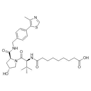 (S,R,S)-AHPC-amido-C7-acid incorporates a VHL ligand for the E3 ubiquitin ligase and a PROTAC linker. (S,R,S)-AHPC-amido-C5-acid can be used to design PROTACs[1].