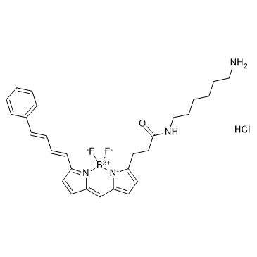 BDP 581/591 amine hydrochloride is a BODIPY dye linker. BDP 581/591 is a universal, photostable fluorophore. The addition of the amine group allows for the compound to react with carboxylic acids, activated NHS esters and other carbonyl groups[1].