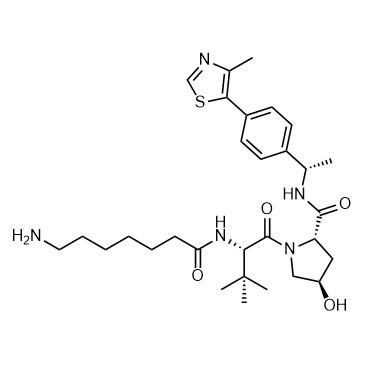 (S,R,S)-AHPC-Me-C6-NH2 can be used for the synthesis of PROTAC[1]. (S,R,S)-AHPC-Me-C6-NH2 (Compound SI-9) contains VHL ligand 2 (HY-112078)[2].