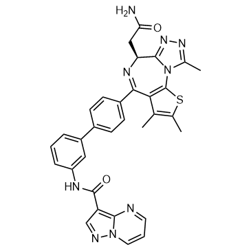 PLX-3618 is a molecular glue, that degrades BRD4 with DC50 of 12.2 nM. PLX-3618 promotes polyubiquitination and subsequent proteasomal degradation of BRD4 by recruiting of the E3 ligase substrate receptor, DCAF11. PLX-3618 inhibits the proliferation of various cancer cells, induces apoptosis in AML cells. PLX-3618 exhibits antitumor activity against AML in mouse models[1].