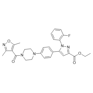 (Synonyms: Ethyl 5-(4-{4-[(3,5-dimethyl-1,2-oxazol-4-yl)carbonyl]-1-piperazi nyl}phenyl)-1-(3-fluorophenyl)-1H-pyrazole-3-carboxylate)
