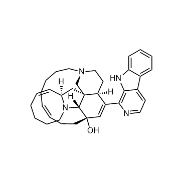Manzamine A, an orally active beta-carboline alkaloid, inhibits specifically GSK-3β and CDK-5 with IC50s of 10.2 μM and 1.5 μM, respectively. Manzamine A targets vacuolar ATPases and inhibits autophagy in pancreatic cancer cells. Manzamine A has antimalarial and anticancer activities. Manzamine A also shows potent activity against HSV-1[1][2][3][4].