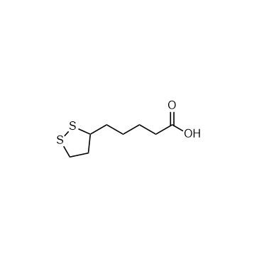 α-Lipoic Acid (Thioctic acid) is an antioxidant, which is an essential cofactor of mitochondrial enzyme complexes. α-Lipoic Acid inhibits NF-κB-dependent HIV-1 LTR activation[1][2][3]. α-Lipoic Acid induces endoplasmic reticulum (ER) stress-mediated apoptosis in hepatoma cells[4]. α-Lipoic Acid can be used with CPUL1 (HY-151802) to construct the self-assembled nanoaggregate CPUL1-LA NA, which has improved antitumor efficacy than CPUL1[5].