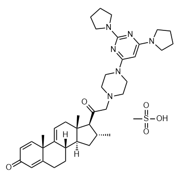 Tirilazad mesylate (U 74006F) is a nonglucocorticoid, 21-aminosteroid that inhibits lipid peroxidation. Tirilazad mesylate can attenuate brain or spinal cord injury caused by trauma, stroke, ischemia and reperfusion injury. Tirilazad mesylate has antiviral activities against nCoV. Tirilazad mesylate is neuroprotective for ischaemic stroke, can be used for subarachnoid hemorrhage research[1][2][3].