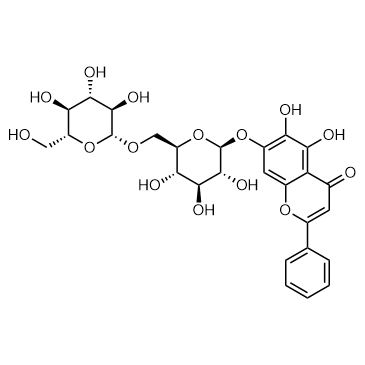 In Vitro:Oroxin B (0-2 μM, 48 h) inhibits the proliferation (48 h), and induces apoptosis (12 h) of the human hepatoma cell line (SMMC 7721)[1].