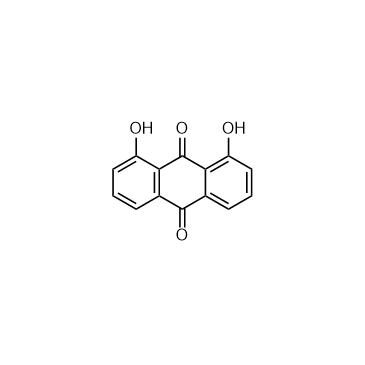 Danthron is a natural product extracted from the traditional Chinese medicine Salvia miltiorrhiza Bunge. Danthron functions in regulating glucose and lipid metabolism by activating AMPK. IC50 & Target:AMPK[1] In Vitro: Danthron (0.1, 1, and 10 μM) dose-dependently promotes the phosphorylation of AMPK and acetyl-CoA carboxylase (ACC) in both HepG2 and C2C12 cells. Meanwhile, Danthron treatment significantly reduces the lipid synthesis related sterol regulatory element-binding protein 1c (SREBP1c) and fatty acid synthetase (FAS) gene expressions, and the total cholesterol (TC) and triglyceride (TG) levels. In addition, Danthron treatment efficiently increases glucose consumption. Danthron effectively reduces intracellular lipid contents and enhances glucose consumption in vitro via activation of AMPK signaling pathway. 10 μM Danthron/24 h is safe for HepG2 cells. With 80% confluence, HepG2 cells are incubated with Danthron (0.1-10 μM) in FBS-Free media for 8 h. Subsequently, cells are harvested for Western blot assay. Danthron increases the p-AMPK protein in a dose-dependent manner, and no changes in t-AMPK protein are observed[1]. Danthron inhibits 9-cis retinoic acid (9cRA)-induced retinoic X receptor α (RXRα) transactivation by IC50 at 0.11 μM. To further clarify the stoichimetric ratio of Danthron binding to RXRα-ligand-binding domain (LBD), isothermal titration calorimetry (ITC) experiment is performed. The KD value of Danthron binds to RXRα-LBD by ITC experiment is determined at 7.5 μM[2]. In Vivo: Danthron functions as an insulin sensitizer in vivo. Danthron improves insulin sensitivity in diet-induced obese (DIO) mice. The insulin tolerance test result shows that Danthron (5 mg/kg) treated diet-induced obesity mice exhibit lower glucose levels after insulin challenge, compared with the control vehicle-treated group[2].