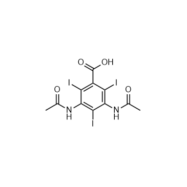 In Vivo: Diatrizoic acid is an iodinated radiocontrast agent. Histological examination of rat lung tissue shows no acute toxicity or inflammation after insufflation of Diatrizoic acid nanoparticle agglomerates. Diatrizoic acid nanoparticle agglomerates offers a promising radiocontrast agent for safe and effective lung visualization[1].