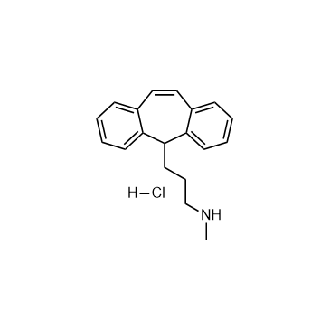 Protriptyline hydrochloride is a potent tricyclic antidepressant (TCA). Protriptyline hydrochloride inhibits AChE activity with an IC50 value of 0.06 mM and inhibits Aβ self-assembly. Protriptyline hydrochloride can be used for the study of depression and Alzheimers disease[1][2][3]. In Vitro:Protriptyline hydrochloride (0-70 μM; 24 hours; PC3 cells) causes cytotoxicity in PC3 cells[2]. In Vivo:Protriptyline hydrochloride (10 mg/kg; i.p.; for 21 days; rat model of AD) improves spatial learning and retention memory in STZ treated rats[3].