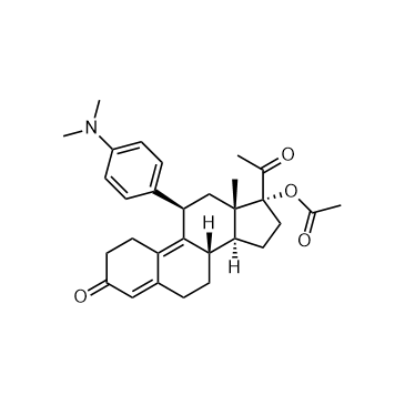 Ulipristal acetate (CDB-2914) is an orally active, selective progesterone receptor modulator (SPRM). Ulipristal acetate stimulates the autophagic response selectively in leiomyoma cells. Ulipristal acetate has the potential for benign gynecological conditions treatment, such as uterine myoma[1][2].