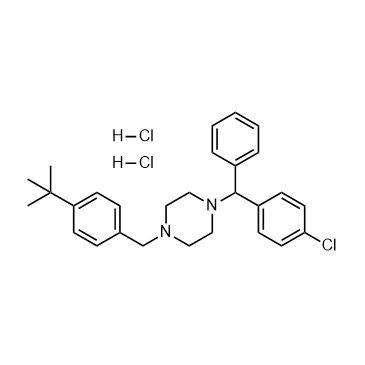 Buclizine dihydrochloride is an orally active antihistamine antiallergic compound. Buclizine dihydrochloride is a potent teratogen in the rat and shows anti-tumor activity[1][2][3].
