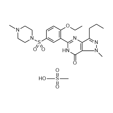 Sildenafil Mesylate is an orally active and selective phosphodiesterase type 5 (PDE5) inhibitor. Sildenafil Mesylate can be used in studies of erectile dysfunction and cancer[1].