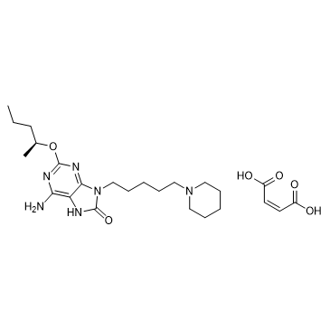 GSK2245035 maleate is a highly potent and selective intranasal Toll-Like receptor 7 (TLR7) agonist with preferential Type-1 interferon (IFN)-stimulating properties. GSK2245035 maleate has pEC50s of 9.3 and 6.5 for IFNα and TFNα. GSK2245035 maleate effectively suppresses allergen-induced Th2 cytokine production in human peripheral blood cell cultures. GSK2245035 maleate is used for asthma[1].