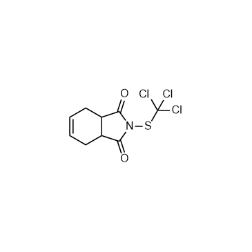 Captan is a common agricultural fungicide used to control Botrytis, Fusarium, Fusicoccum, Pythium. Captan enhances denitrifying and total culturable bacteria[1]. In Vitro: Captan is used as a fungicide could be nullified by detrimental effects on microbial processes having a major influence on plant growth[1].