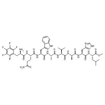 BIM-26226 is a selective gastrin-releasing peptide receptor (GRPR) (IC50 = 6 nM) and bombesin receptor (BN receptor) antagonist. BIM-26226 antagonizes BN- or GRP-stimulated amylase release with IC50 values of 0.3 nM and 0.2 nM, respectively. BIM-26226 is specific for the GRP-preferring BN receptor subtype with no interference with GRP receptor system. BIM-26226 can induce the synthesis of somatostatin receptor but has no significant effect on tumor growth[1][2][3][4].
