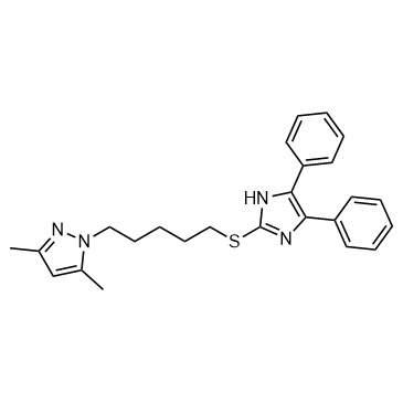 RP 70676 is a potent inhibitor of ACAT, with IC50 of 25 and 44 nM for rat and rabbit ACAT. IC50 & Target: IC50: 25 nM (Rat ACAT), 44 nM (Rabbit ACAT)[1] In Vitro: RP 70676 is a potent inhibitor of rabbit arterial ACAT (IC50 = 40 nM) and has been shown to be an effective inhibitor of ACAT derived from a number of tissues and species including man. The IC50 values range from 21 nM for hamster liver ACAT to 108 nM for enzyme from the intestine of cholesterol fed rabbits; in human hepatic tissues the mean IC50 is 44 nM. In whole cell P388D, murine macrophages the compound has an IC50 of 540 nM. In Vivo: RP 70676 (10 mg/kg, p.o.) is well absorbed with plasma levels in NZW rabbits[1].