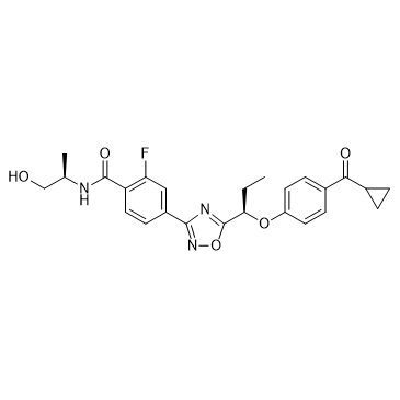 Firuglipel (DS-8500a) is an orally available, potent and selective GPR119 agonist. IC50 & Target:GPR119[1] In Vitro: Firuglipel (DS-8500a) increases intracellular cAMP in a concentration-dependent manner in human, rat, and mouse GPR119-expressing Chinese hamster ovary (CHO)-K1 cells, with EC50 values of 51.5, 98.4, and 108.1 nM, respectively. DS-8500a has no effect on intracellular cAMP in pcDNA3.1/CHO-K1 cells[1]. In Vivo: Firuglipel (DS-8500a) (1-30 mg/kg) upregulates glucagon-like peptide-1 and enhances glucose-dependent insulin secretion and improves glucose homeostasis in type 2 diabetic rats[1].