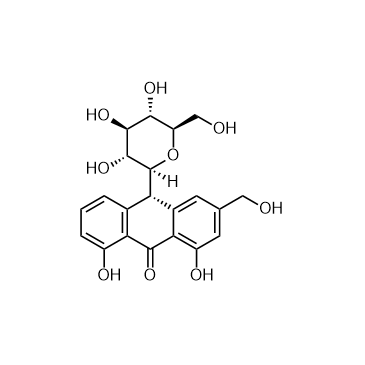 Aloin (Aloin-A; Barbaloin-A) is a natural anti-tumor anthraquinone glycoside with iron chelating activity. Aloin induces the differentiation of MC3T3-E1 cells into osteoblasts through MAPK-mediated Wnt and Bmp signaling pathways. Alkaline phosphatase (ALP) is an early marker of osteoblast differentiation, and the activity of ALP is also enhanced by Aloin. Aloin also reduces brain edema, reduces blood-brain barrier disruption and improves cortical impact injuries. Aloin is used in research into osteoporosis and traumatic brain injury (TBI)[1][2][3][4].