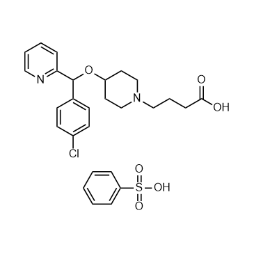 (Rac)-Bepotastine (besilate) is the isomer of Bepotastine (besilate) (HY-A0015), and can be used as an experimental control. Bepotastine besilate is a selective and orally active second-generation histamine H1 receptor antagonist, can suppress the expression of nerve growth factor (NGF). Bepotastine besilate has the potential for allergic rhinitis, allergic conjunctivitis and urticaria/pruritus research[1][2][3][4].