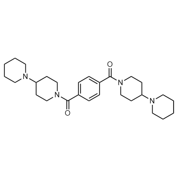 UNC1079 is the piperidine analog of UNC1021, as a structurally similar but significantly less potent inhibitor for use as a negative control in cellular studies. Target: L3MBTL3 The low anticipated affinity of UNC1079 was confirmed, as it demonstrated an activity versus L3MBTL3 of > 10 μM by AlphaScreen, which is >1000-fold weaker than UNC1215. UNC1079 also displays weak binding by ITC.