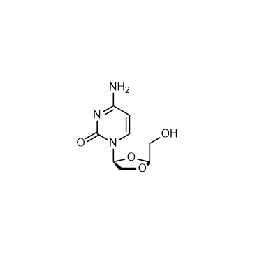 Troxacitabine is nucleoside analog with potent anticancer activity. In Vitro: Troxacitabine has shown cutotoxicity in cancer cell lines of hepatocellular (HepG2), prostate (PC3, DUI45), non-small cell lung (NCI-H460, NCr-322M) colon (HT29), renal (CAK-l, A498, RXF-393, SNI2-C) and pancreatic origin (Pnac-Ol, MiaPa Ca) with IC50s range from 15-35 μM[1][2]. In Vivo: Troxacitabine is highly active against the Panc-01 model, with TGI levels of 88.5% and 84.3% at the 10 and 25 mg/kg doses, respectively. The mean final tumor weights for animals given troxacitabine are also significantly smaller compared with vehicle controls. Troxacitabine has less activity against the MiaPaCa model[3]. Troxacitabine is very effective in human RCC tumor xenograft models, including CAM-i, A498, RXF-393, and SN12C carcinomas. Very good responses are ob served in animals bearing CAM-i, A498, and RXF-393 RCC tumors given i.p. doses of 10, 25, and 50 mg/kg twice a day for 5 days[2].