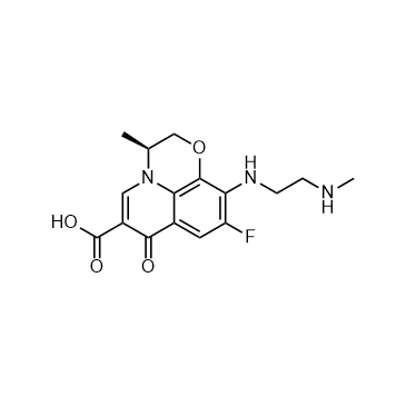 (Synonyms: (S)-9-Fluoro-2,3-dihydro-3-methyl-10-(2-(methylamino)ethylamino)-7-oxo-7H-pyrido(1,2,3-de)(1,4)benzoxazine-6-carboxylic acid)
