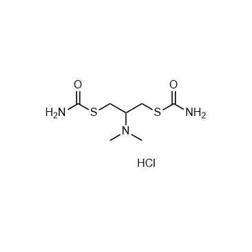 Cartap hydrochloride, an organonitrogen insecticide, can cause a marked irreversible Ca2+-dependent contracture in both isolated mouse and rabbit phrenic nerve-diaphragms. Cartap hydrochloride significantly increases the level of endogenous reactive oxygen species (ROS) in C2C12 cells[1]. In Vitro: Cartap hydrochloride (10-1000 μM; 24 hours) exerts a dose- and time-dependent cytotoxic effect in C2C12 cells. Cartap hydrochloride significantly increases the level of endogenous reactive oxygen species (ROS) in C2C12 cells in a dose- and time-dependent manner[1].