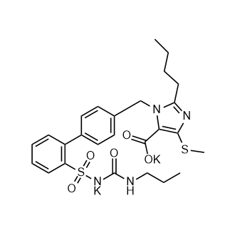 Fonsartan (HR720) is an AT1 receptor antagonist. Fonsartan can be used for the study of myocardial infarction (MI)[1][2]. In Vitro:Fonsartan selectively inhibits AT1 receptors (mainly in the adrenal cortex (IC50 = 1.5 × 10-8 M)) while having a lower affinity for AT2 receptors (mainly in the adrenal medulla (IC50 = 1.4 × 10-6 M))[2]. In Vivo:Fonsartan (3 mg/kg, s.c., once daily for 6 weeks) produces the most comprehensive cardioprotective effect when administered to rats with myocardial infarction (MI) modeling starting 3 to 24 hours after modeling[1].