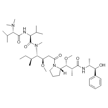 Auristatin E (GMP) is Auristatin E (HY-15582) produced by using GMP guidelines. Auristatin E is a tubulin polymerization inhibitor[1].