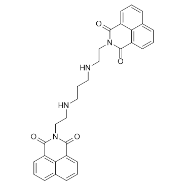 Elinafide is an anticancer agent with a naphthalimide structure that targets DNA. Elinafide interferes with cell metabolism by inserting a planar ring into the DNA double helix and interacting with enzymes through its side chain.LU-79553 is a DNA-binding topoisomerase II inhibitor. The IC50 value of Elinafide for HT-29 cells is 0.014 μM[1][2].