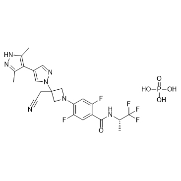 Povorcitinib (INCB54707) phosphate is a potent and selective JAK1 inhibitor that effectively reduces abscesses and inflammatory nodules. Povorcitinib phosphate can be used to study cutaneous lupus erythematosus (CLE) and lichen planus (LP) (information extracted from patent WO2021076124A1)[1].