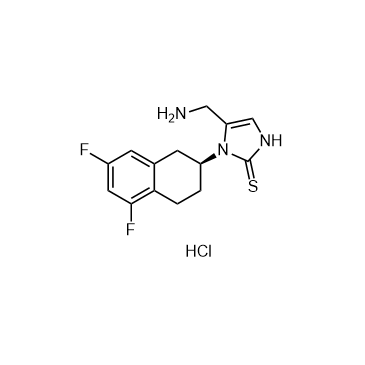 Nepicastat hydrochloride (SYN-117 hydrochloride) is a selective, potent, and orally active inhibitor of dopamine-beta-hydroxylase. Nepicastat hydrochloride produces concentration-dependent inhibition of bovine (IC50=8.5 nM) and human (IC50=9 nM) dopamine-beta-hydroxylase. Nepicastat hydrochloride can cross the blood-brain barrier (BBB)[1][2][3]. IC50 & Target: IC50: 8.5 nM (bovine dopamine-beta-hydroxylase), 9 nM (human dopamine-beta-hydroxylase)[2] In Vivo: Nepicastat hydrochloride (SYN-117 hydrochloride) (3-100 mg/kg; p.o.; three consecutive times, 12 hours apart times) produces dose-dependent decreases in noradrenaline content, increases in dopamine content and increases in dopamine/noradrenaline ratio in the artery (mesenteric or renal), left ventricle[3].