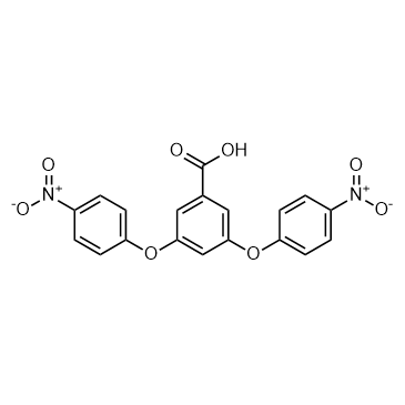 3,5-Bis(4-nitrophenoxy)benzoic acid is an inhibitor of γ-secretase. 3,5-Bis(4-nitrophenoxy)benzoic acid causes a decrease in the released levels of Aβ42 and notch-1 Aβ-like peptide 25 (Nβ25). 3,5-Bis(4-nitrophenoxy)benzoic acid, as a marker for fetal hypothyroidism, is a 3,3’-diiodothyronine sulfate (T2S) cross-reactive material in maternal serum[1].