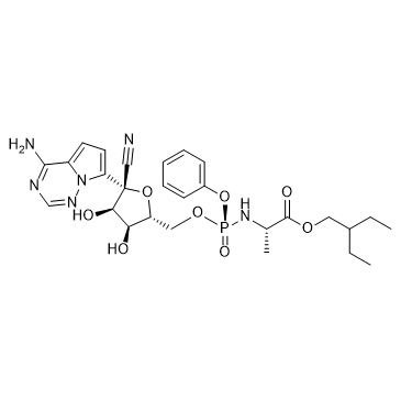Remdesivir (GS-5734) is a nucleoside analogue with effective antiviral activity. Remdesivir can inhibit the synthesis of viral DNA or RNA. Remdesivir can be used for the research of infection, such as SARS-CoV and MHV infection[1][2][3].