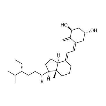 1α-Hydroxyvitamin D5 (CARD-024) is a vitamin D analog with extremely low hypercalcemic effects. 1α-Hydroxyvitamin D5 effectively attenuates the pro-fibrotic response of colonic myofibroblasts to TGFβ and high-stiffness substrates by inhibiting the expression of αSMA, the phosphorylation of FAK, and the gene expression of MLCK and ET-1, while activating the anti-inflammatory pathway of IL-1β/COX-2. 1α-Hydroxyvitamin D5 can be used in research related to intestinal fibrosis associated with Crohn's disease[1].