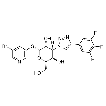 Selvigaltin (GB1211) is an orally active galectin-3 small molecule inhibitor with an IC50 value of 12 nM in rabbits, showing anti-tumor activity. Selvigaltin decreases galectin-3 levels in the liver and reduces biomarkers of liver function (AST, ALT, bilirubin), inflammation (cells foci) and fibrosis (PSR, SHG), as well as decreasing the mRNA and protein expression of several key inflammation and fibrosis biomarkers (IL6, TGFβ3, SNAI2, collagen). Selvigaltin restores T-cell activity and induces less tumors and metastasis[1][2][3][4].