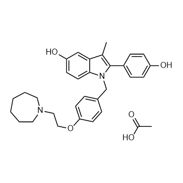 Bazedoxifene acetate (TSE-424 acetate) is an oral, nonsteroidal selective estrogen receptor modulator (SERM), with IC50s of 23 nM and 99 nM for ERα and ERβ, respectively. Bazedoxifene acetate can be used for the research of osteoporosis. Bazedoxifene acetate also acts as an inhibitor of IL-6/GP130 protein-protein interactions and can be used for the research of pancreatic cancer[1][2].