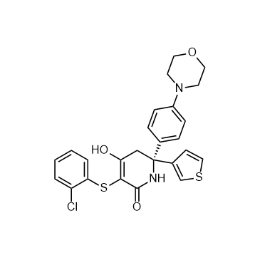 (R)-GNE-140 is a potent lactate dehydrogenase A (LDHA) inhibitor, with IC50s of 3 nM and 5 nM for LDHA and LDHB, respectively; (R)-GNE-140 is 18-fold more potent than S enantiomer. IC50 & Target: IC50: 3 nM (LDHA), 5 nM (LDHB)[1] In Vitro: (R)-GNE-140 inhibits proliferation in 37 of 347 cancer cell lines tested at a potency cut off of 5 μM. (R)-GNE-140 shows inhibitory effect on two chondrosarcoma (bone) cancer cell lines that harbor IDH1 mutations, with the IC50 of 0.8 μM[1]. In Vivo: (R)-GNE-140 (5 mg/kg) has high bioavailability in mice. At higher oral doses, ranging from 50 to 200 mg/kg, (R)-GNE-140 displays greater exposure.