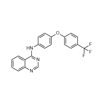ND-011992 is a reversible, selective quinazoline-type inhibitor targeting quinone reductases and quinol oxidases. ND-011992 inhibits respiratory complex I and bo3 oxidase in addition to bd-I and bd-II oxidases in E. coli strain BL21*Δcyo with the IC50 of 0.12, 2.47, 0.63 and 1.3 μM, respectively. ND-011992 can be used for tuberculosis study[1]. IC50 & Target:0.12 μM (respiratory complex I), 2.47 μM (bo3 oxidase), 0.63 (bd-I oxidases), 1.3 μM (bd-II oxidases) In Vitro:ND-011992 inhibits NADH oxidase activity of membranes from bovine heart mitochondria with an IC50 of 3.27 µM[1].