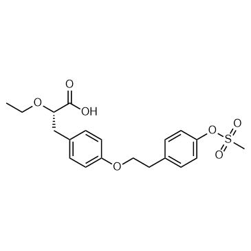 Tesaglitazar is a dual-target PPARα/γ agonist with an EC50 of 13.4 μM for rat PPARα and 3.6 μM for human PPARα. Tesaglitazar affects lipid and glucose metabolism by activating PPARα and PPARγ receptors, and has the potential to improve blood sugar and relieve pain. Tesaglitazar can be used to induce in vivo tumor models and can be used in the study of type 2 diabetes, dyslipidemia, and neuropathic pain[1][2][3].