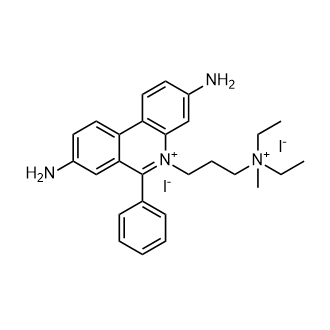 Propidium Iodide (PI) (solution) is a nuclear staining agent that stains DNA. Propidium Iodide is an analogue of ethidine bromide that emits red fluorescence upon embedding in double-stranded DNA. Propidium Iodide cannot pass through living cell membranes, but it can pass through damaged cell membranes to stain the nucleus. Propidium Iodide has a fluorescence wavelength of 493/617 nm and a wavelength of 536/635 nm after Mosaic with DNA. Propidium Iodide is commonly used in the detection of apoptosis (apoptosis) or necrosis (necrosis) , and is often used in flow cytometry analysis.