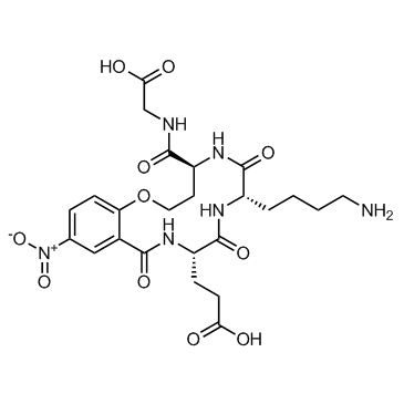 Solubility: | H2O : 2 mg/mL (ultrasonic);NH4OH : 50 mg/mL (ultrasonic;adjust pH to 10 with NH4OH) |
