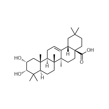 3-epi-Maslinic acid is an acidic pentacyclic triterpene isolated from Hexane and dichloromethane extracts of Platostoma africanum P. Beauv[1].