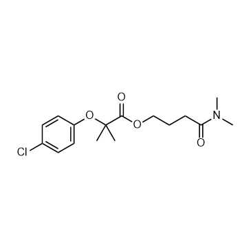 Clofibride is an orally active hypolipaemic agent of pchlorophenoxyisobutyric type. Clofibride has weak toxicity and marked hypocholesterolaemic and hypotriglyceridaemic activity. Clofibride is converted into 4-chlorophenoxyisobutyric acid (CPIB) and 4-hydroxy-N-dimethylbutyramide (HMB) in vivo[1]. In Vivo:Clofibride (oral, 400; 500 and 1000 mg/kg; single) can rapidly and massively resorb and hydrolys into 4chlorophenoxyisobutyric acid (CPIB) and 4-hydroxy-N-dimethylbutyramide (HMB) [1].