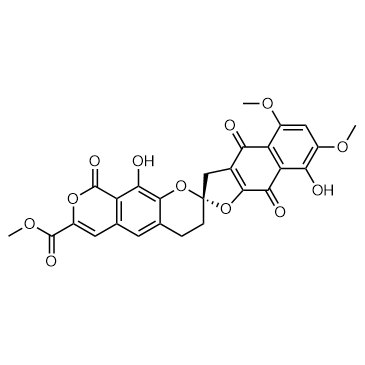 β-Rubromycin, a quinone antibacterial agent, is a selective HIV-1 reverse transcriptase inhibitor with a Ki of 0.27 μM. β-Rubromycin is a potent telomerase inhibitor with an IC50 of 3 μM. β-Rubromycin inhibits the proliferation of both K-562 and HeLa cells with IC50 values of 19.5 µM and 22.7 µM, respectively[1][2].