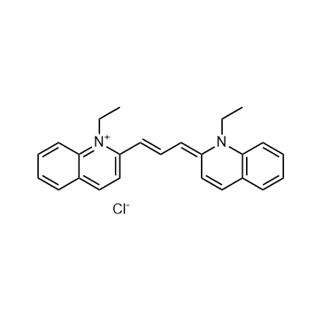 Pinacyanol chloride (Quinaldine blue) is a bright blue cyanine dye. Pinacyanol chloride is used for staining chromosomes in histology and for studying bacteria in biochemistry[1][2].