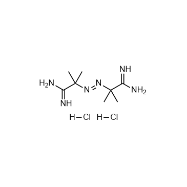 AAPH (2,2'-Azodiisobutyramidine dihydrochloride) has an effect of radical generation. AAPH induces oxidative stress and erythrocyte hemolysis[1]. AAPH decomposes at 37℃ to generate an alkyl radical, is used as an initiator. In the presence of oxygen, these alkyl radicals will be converted to peroxyl radicals that can cause lipid peroxidation and loss of erythrocyte membrane integrity, which could ultimately lead to hemolysis[1][2][3][4].