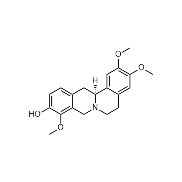 Corydalmine (L-Corydalmine) inhibits spore germination of some plant pathogenic as well as saprophytic fungi[1]. Corydalmine acts as an oral analgesic agent, exhibiting potent analgesic activity[2]. Corydalmine alleviates Vincristine-induced neuropathic pain in mice by inhibiting an NF-κB-dependent CXCL1/CXCR2 signaling pathway[3]. In Vivo: Corydalmine (L-Corydalmine) is a potent analgesic agent, in cynomolgus monkey, beagle dog, rat and mouse liver microsomes[2].